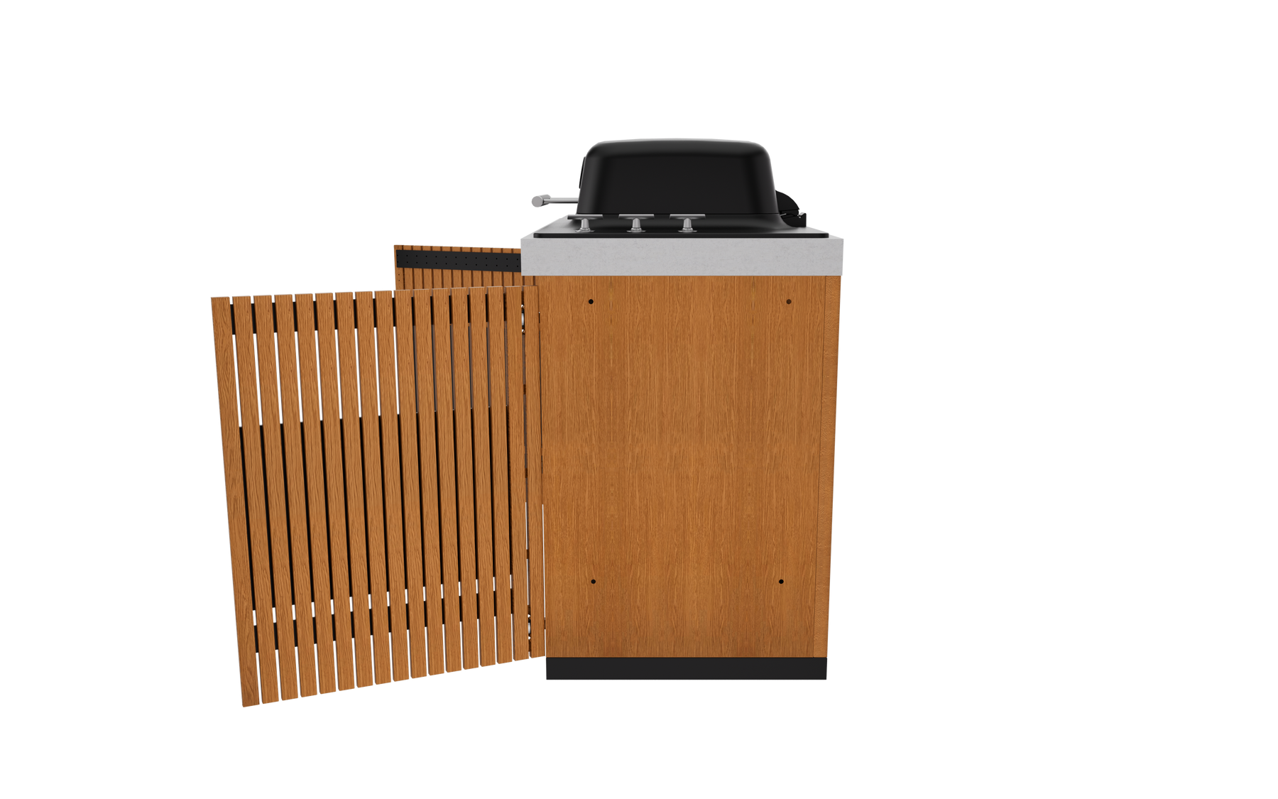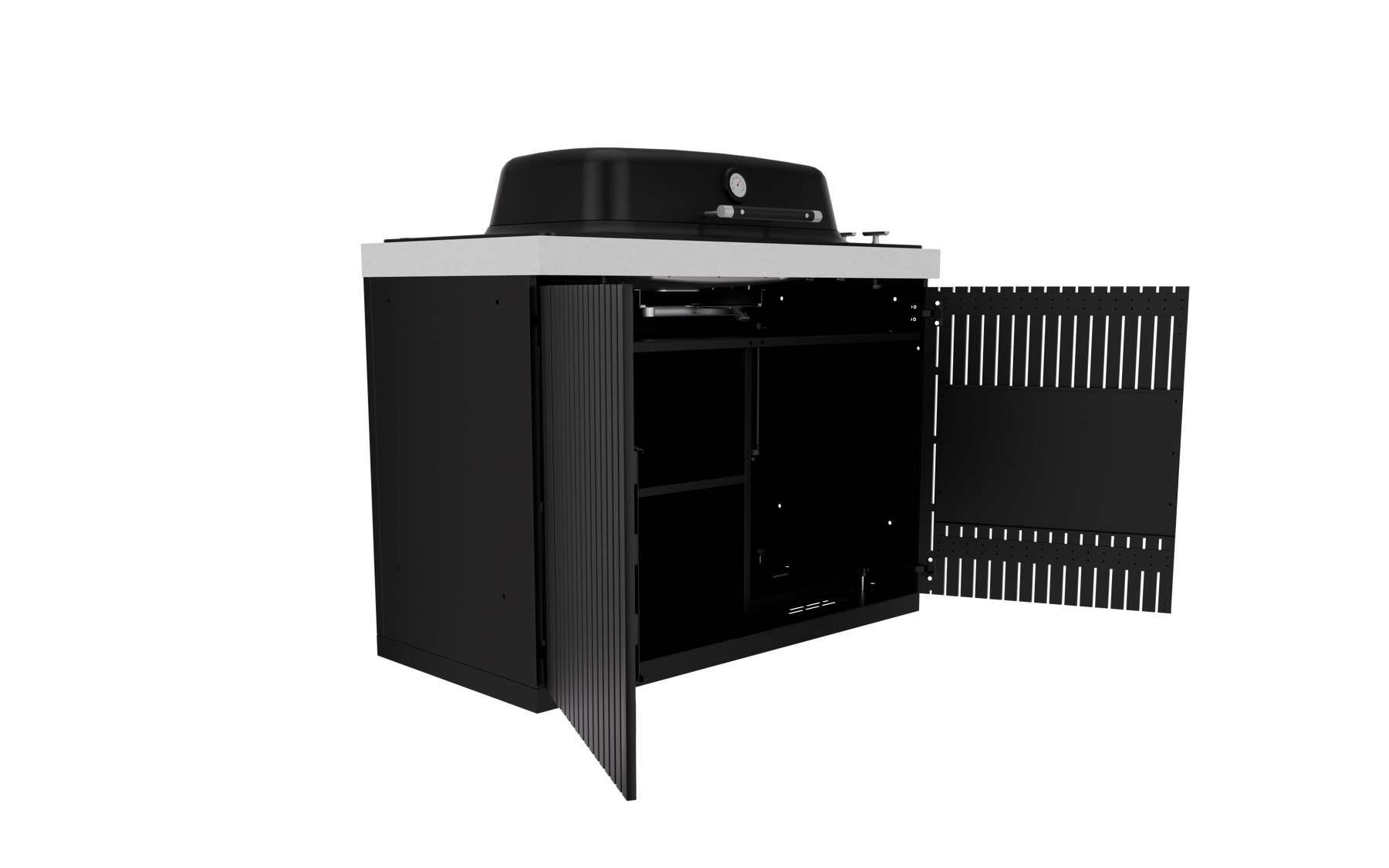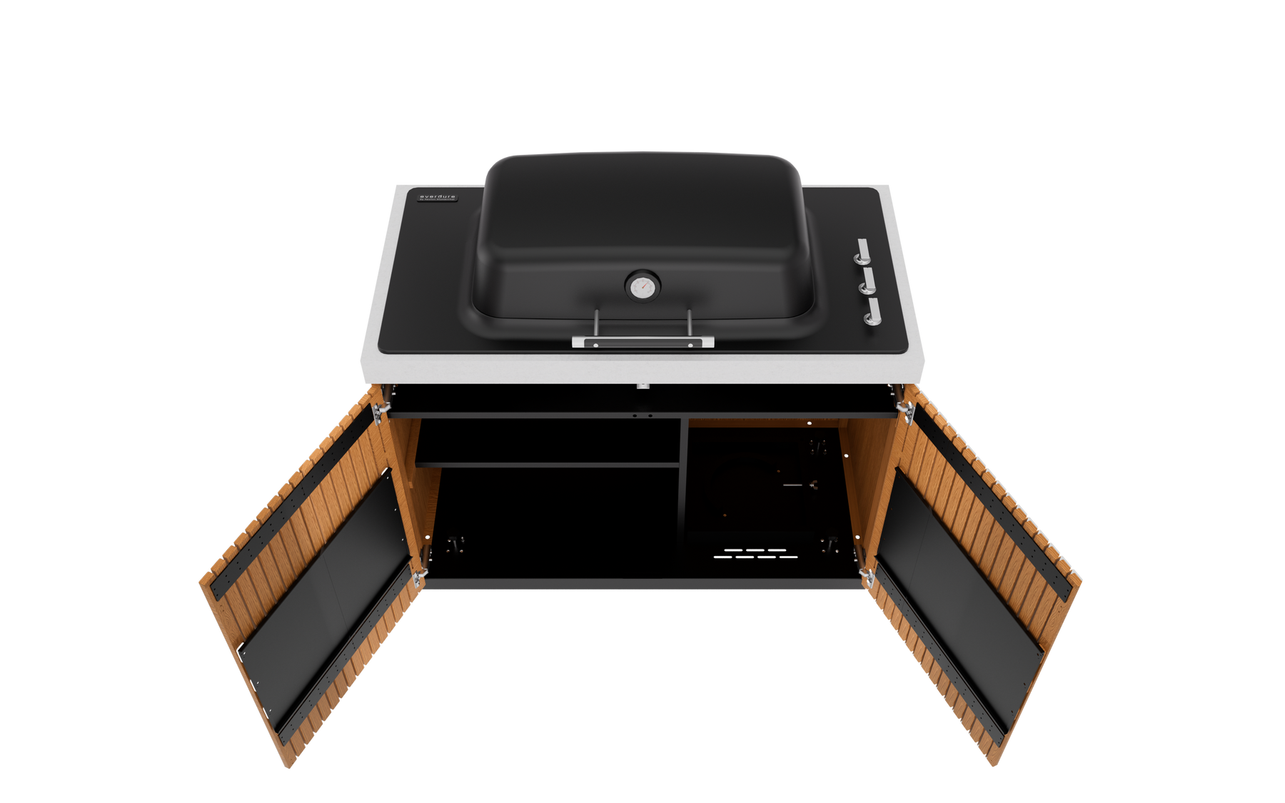 • Large storage cabinet with an internal shelf for BBQ accessories