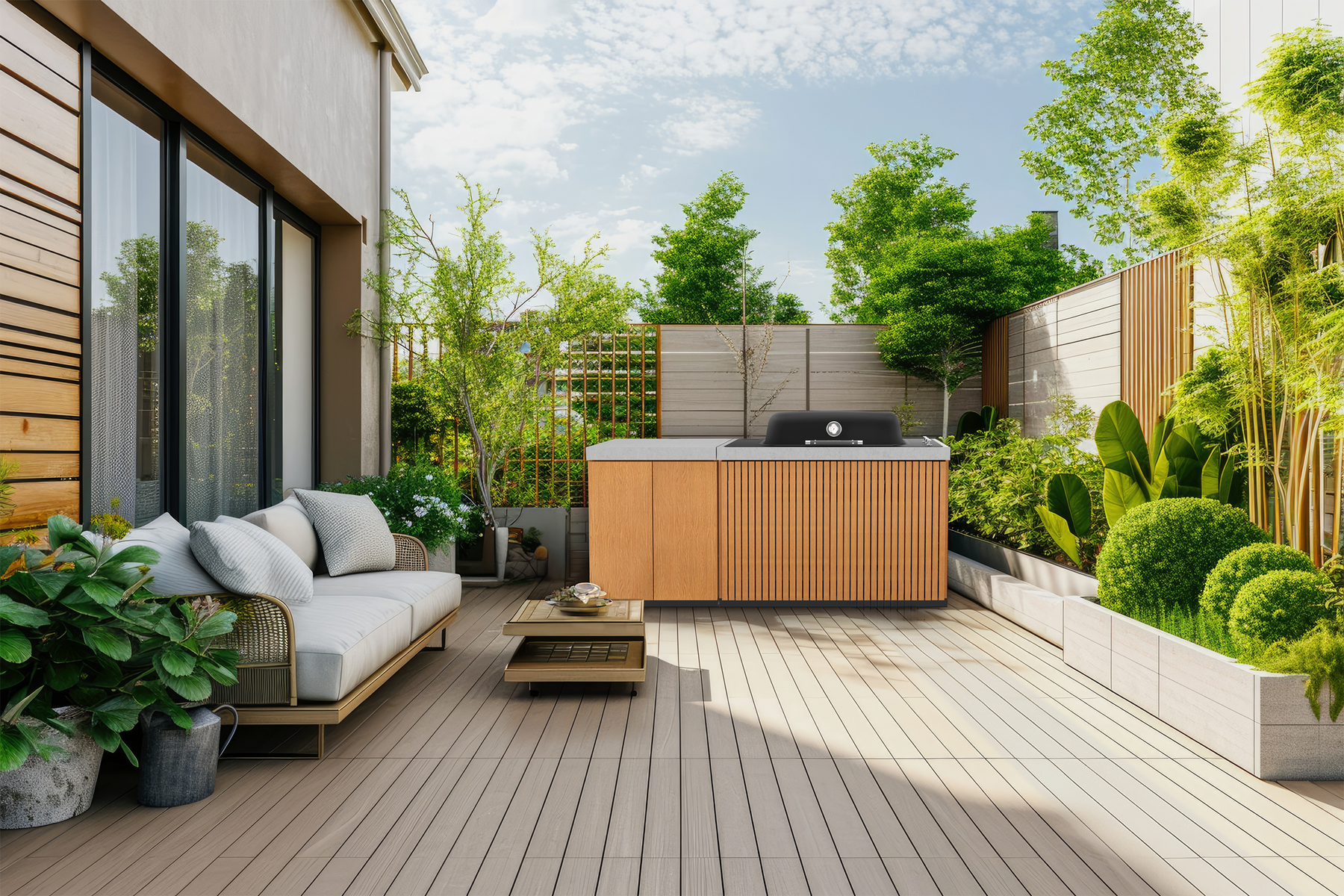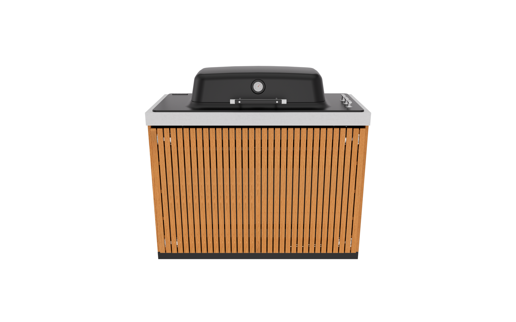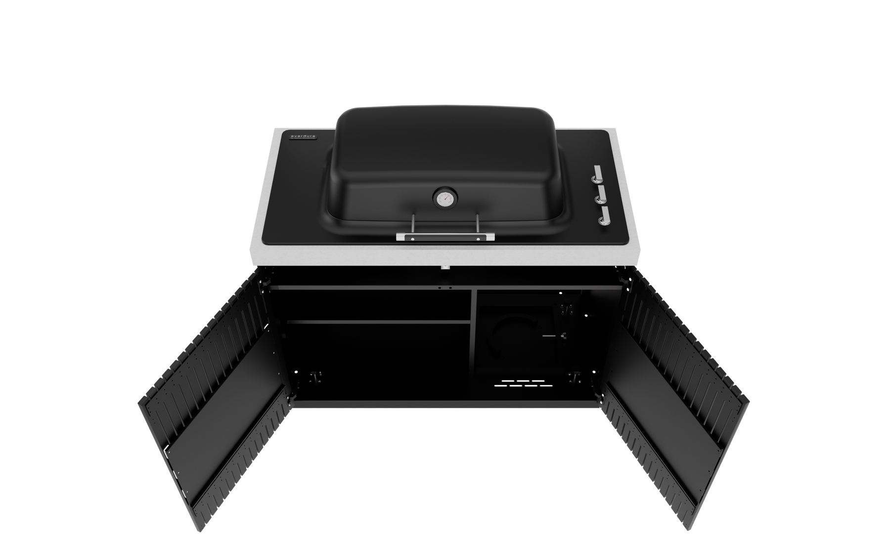 • Large storage cabinet with an internal shelf for BBQ accessories