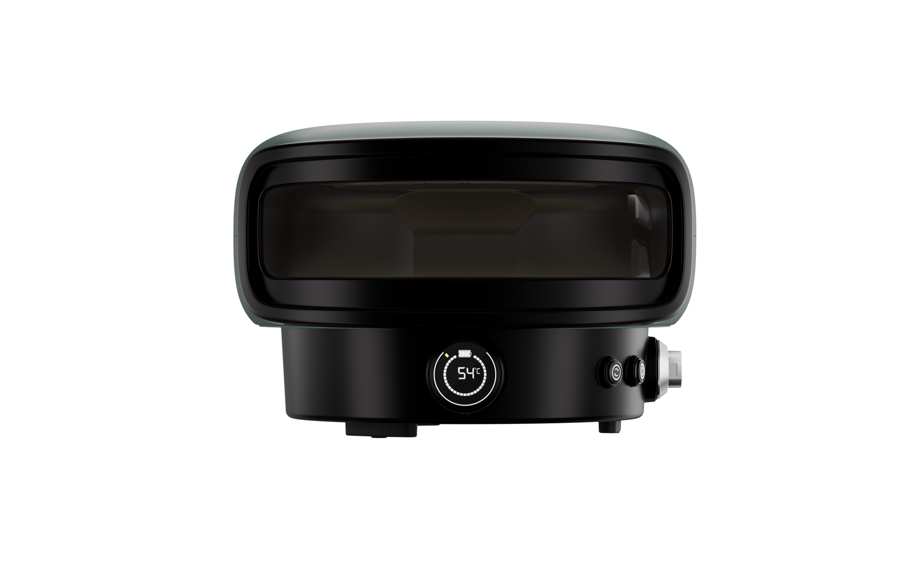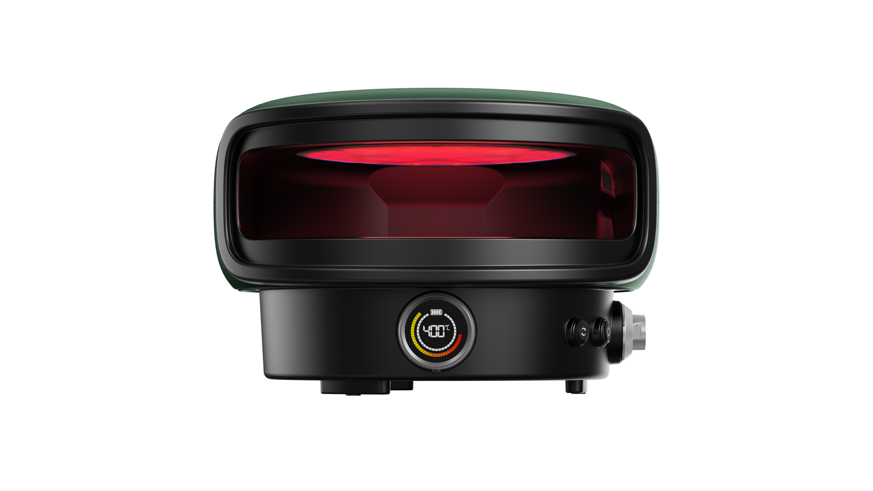 The battery-powered rotating turntable evenly cooks your pizza for you — no manual turning required.