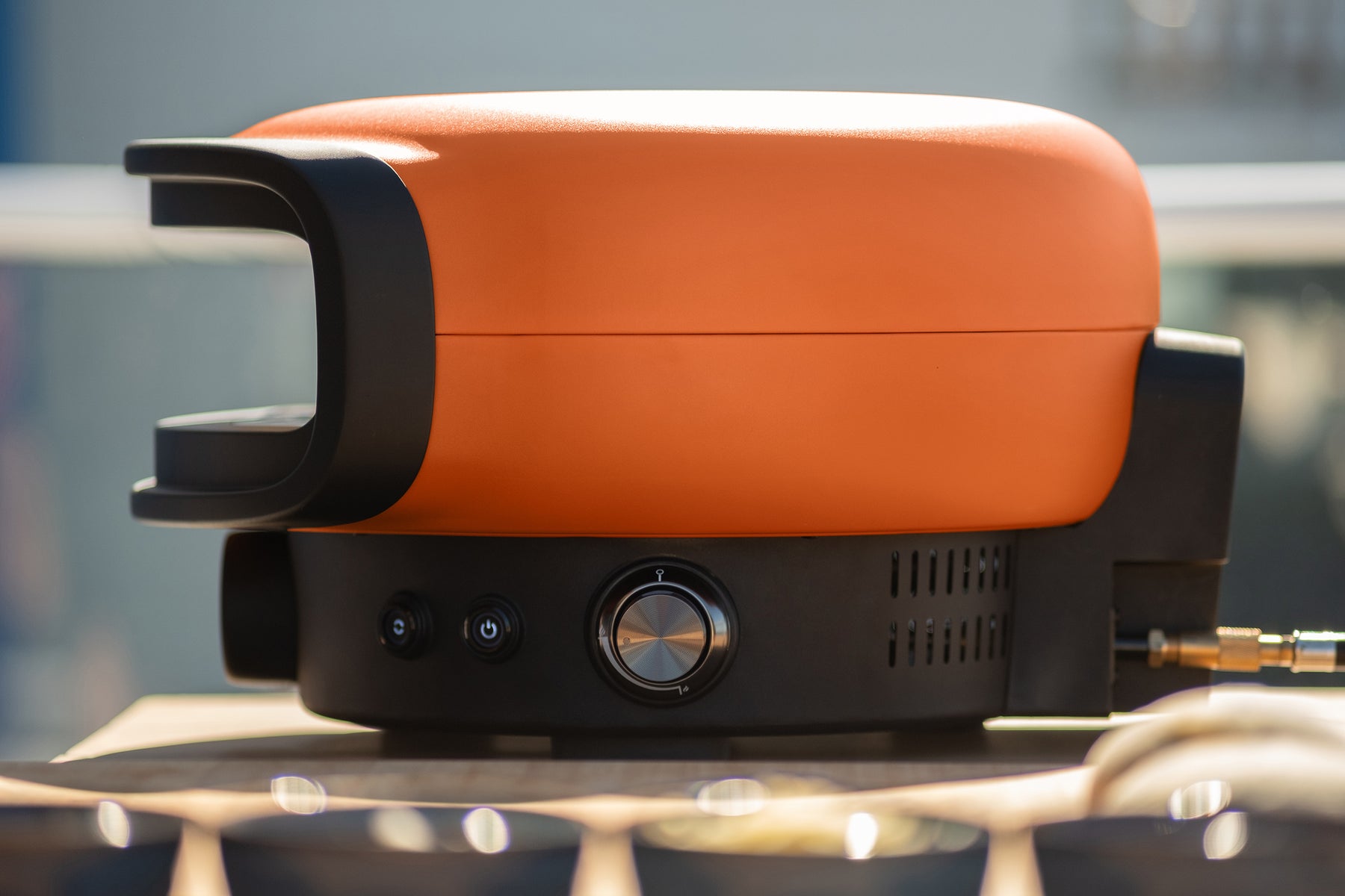 Practical details like propane canister or LPG / propane cylinder connection options*, a dual-insulated body, and a quick-release removable stone make cooking, cleaning, and transport seamless.