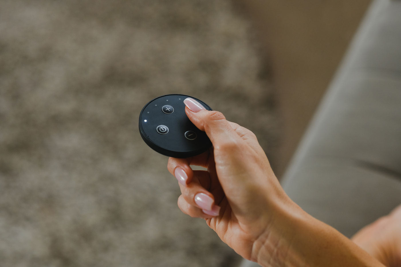 Two remotes let you adjust settings from the comfort of your chair. When not in use, store one neatly in the hidden compartment for easy access.