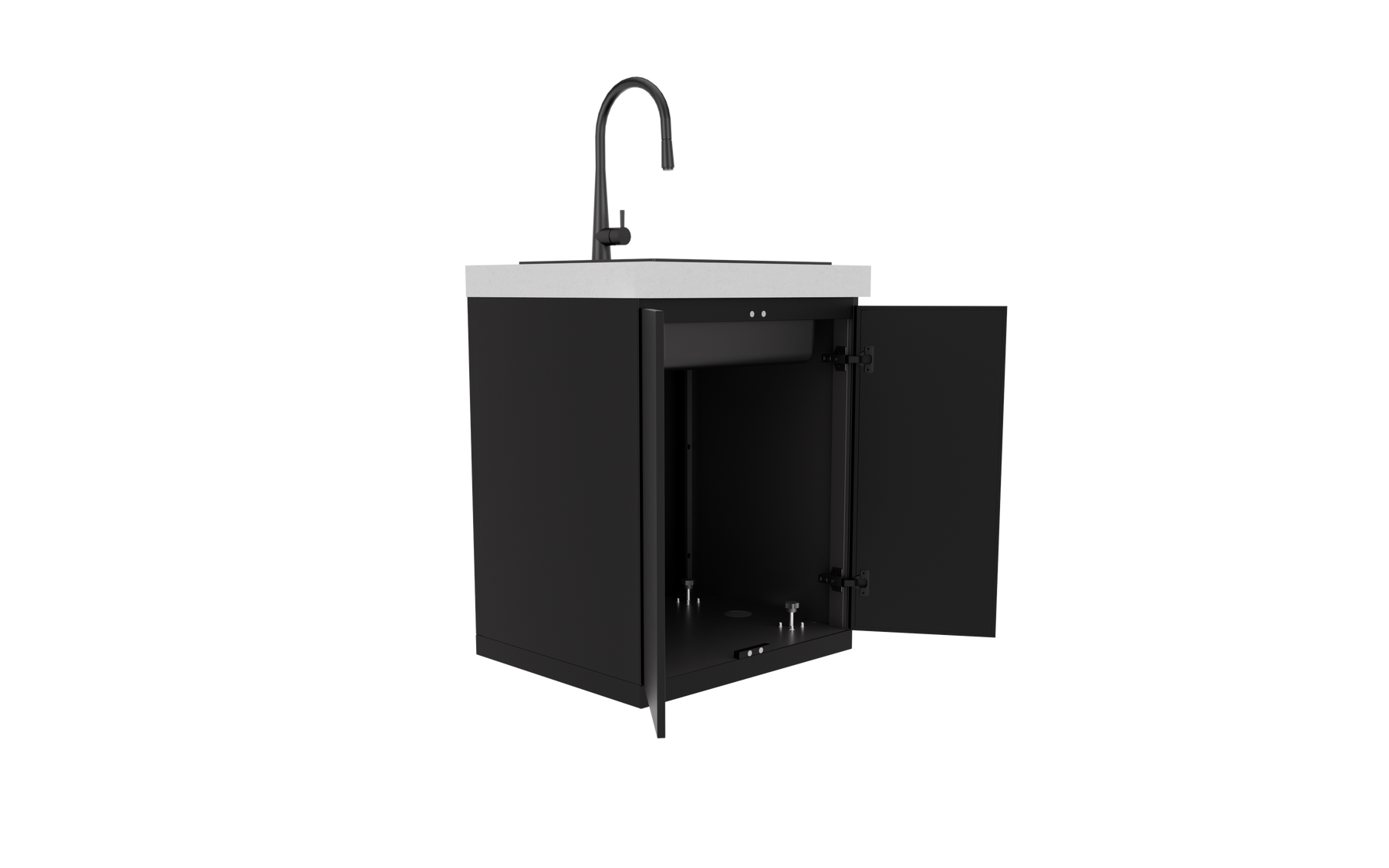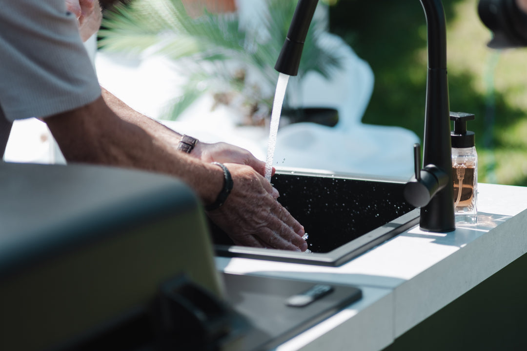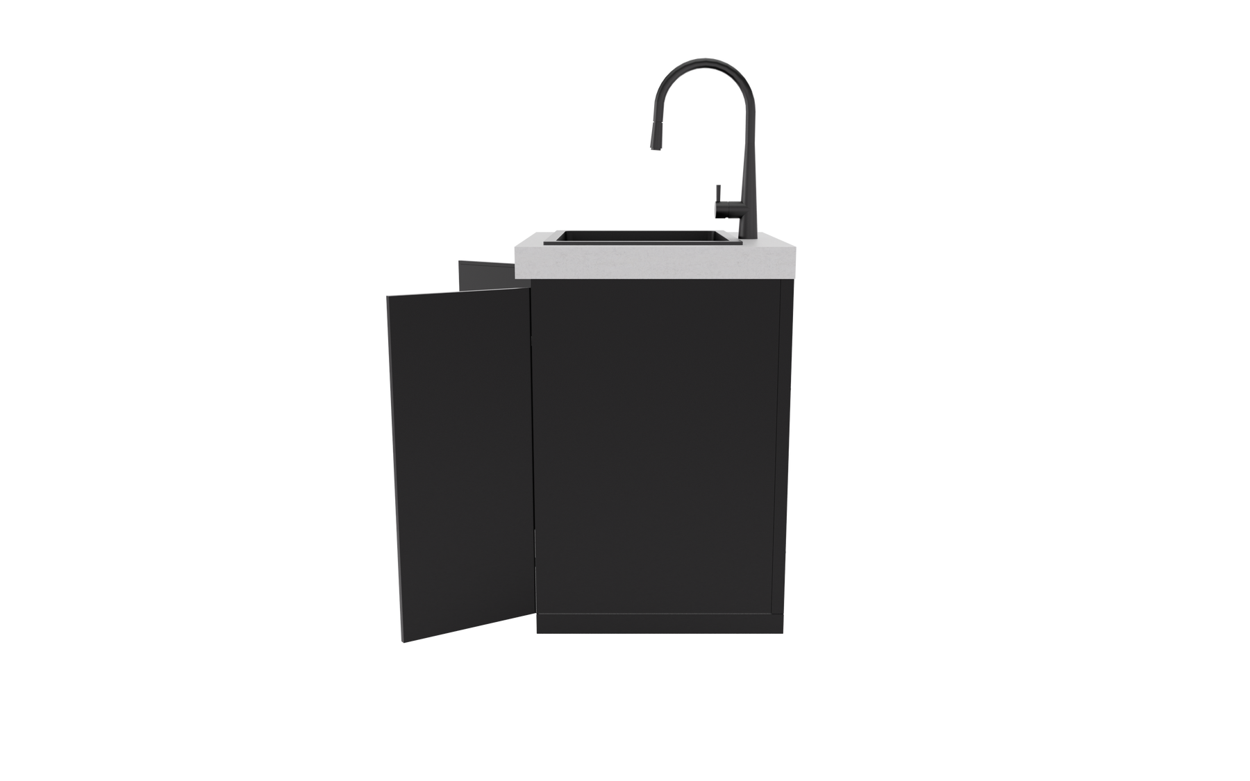 • Sleek matte black composite sink for effortless preparation and cleaning