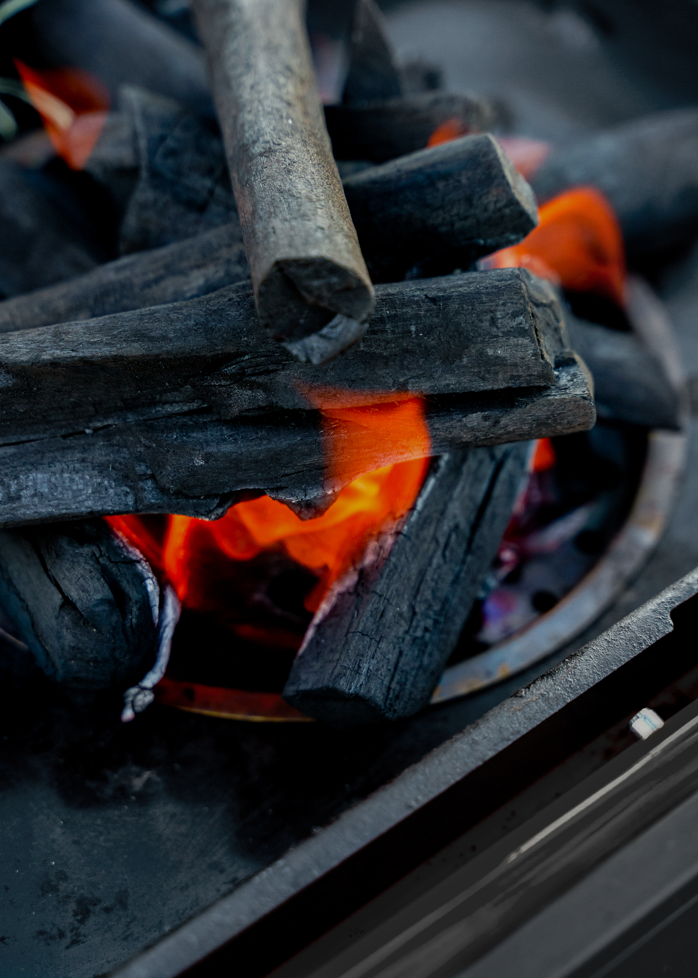 • Durable single piece porcelain enamel firebox and removeable charcoal tray
