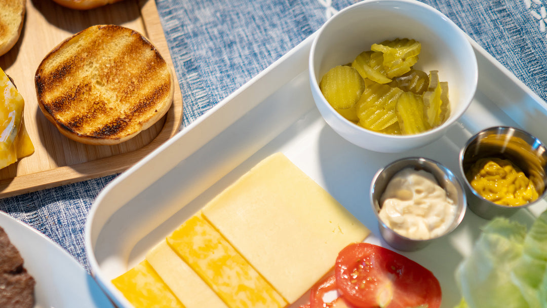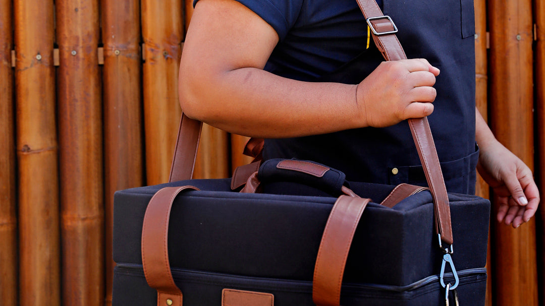 • Secure latch system to lock in the food-grade storage tray & bamboo preparation board for transport and storage