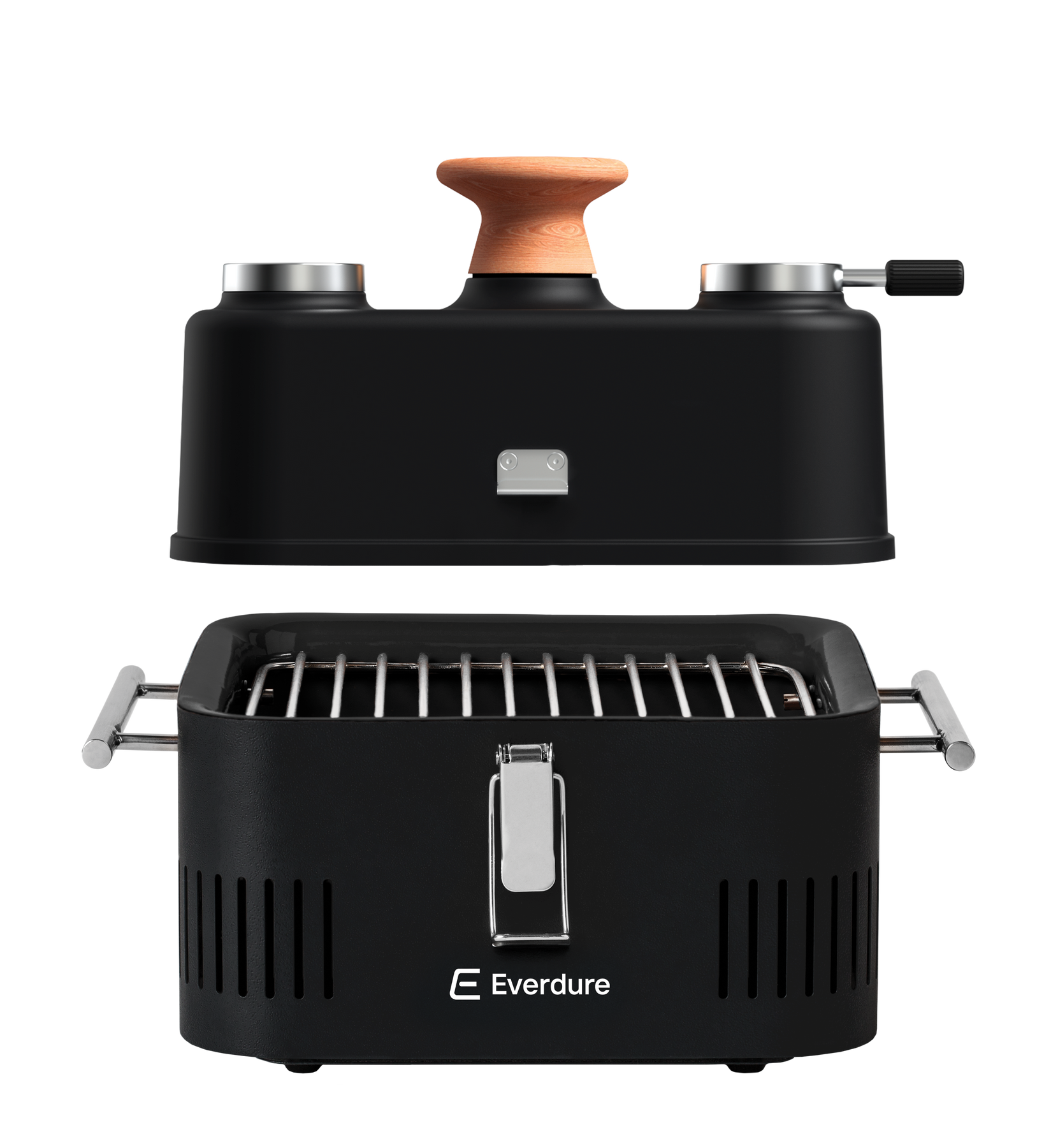 • Secure latch system locks in the Roasting Hood for transport and storage