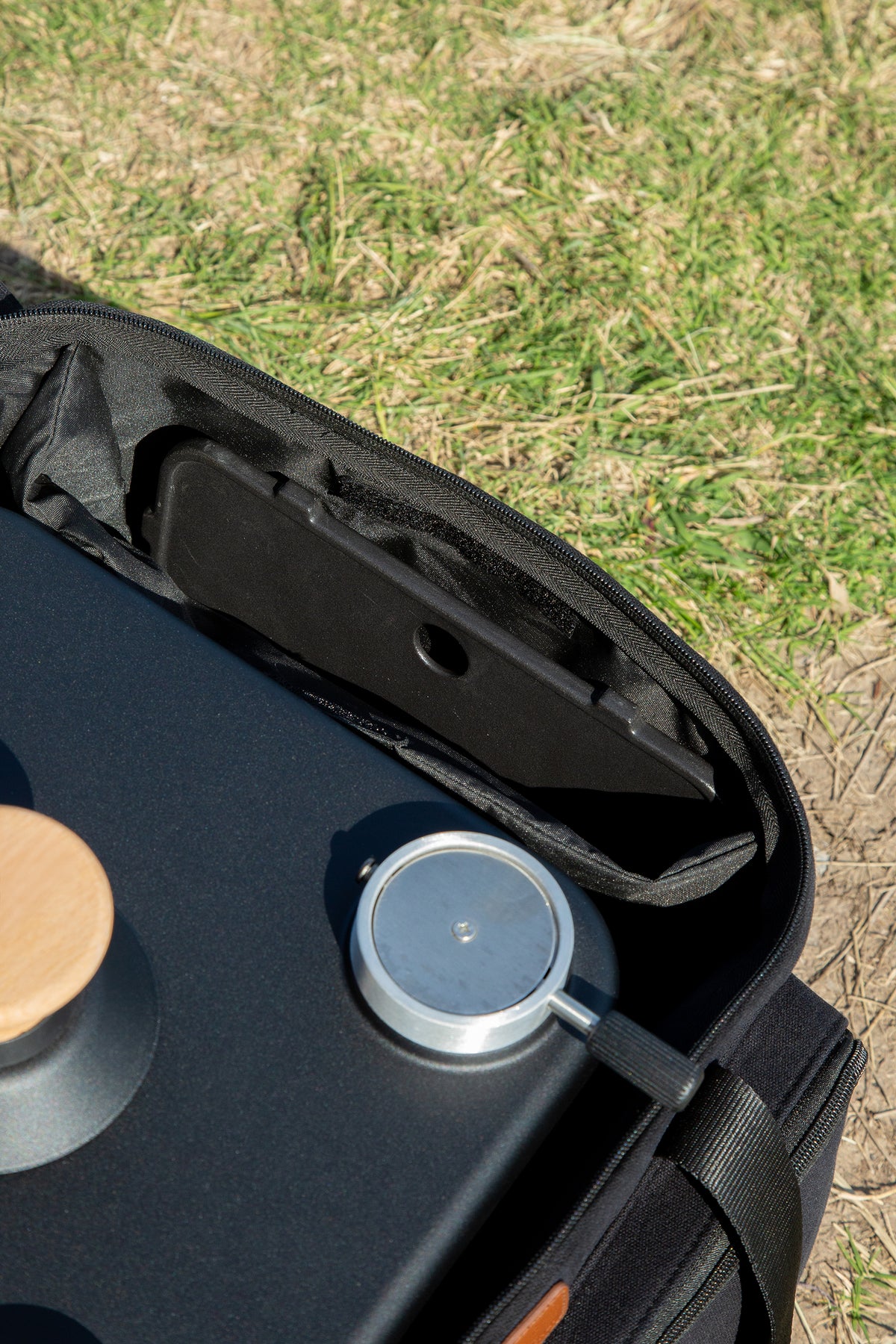 The Travel Bag is the ultimate companion for grill enthusiasts on the move. Crafted from durable canvas, this bag is built to store and transport your CUBE PROFLAME 360 safely and securely. Featuring padded carry handles, a comfortable shoulder strap, and underside studs for added durability, this travel bag seamlessly blends durability with style.