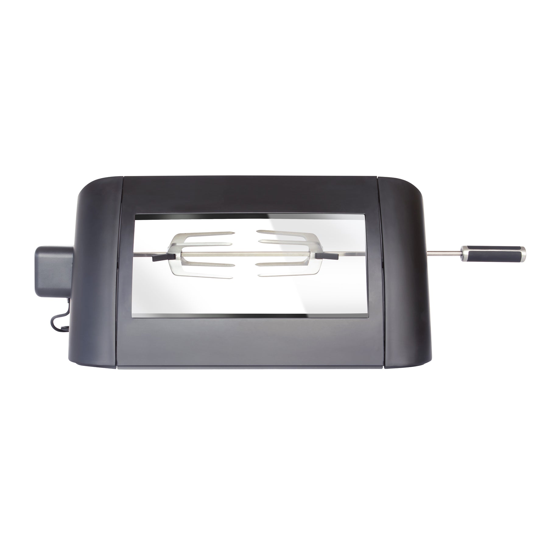 A large glass viewing window lets you keep an eye on your food as it cooks, and an internal light provides clear visibility in low-light conditions. CLIPLOCK™ forks hold your food securely in place for stable rotation. When not in use, the collapsible design allows the kit to store neatly.