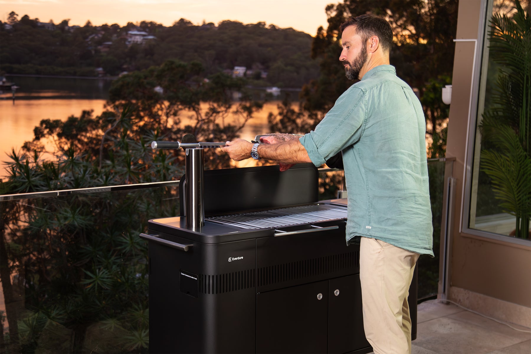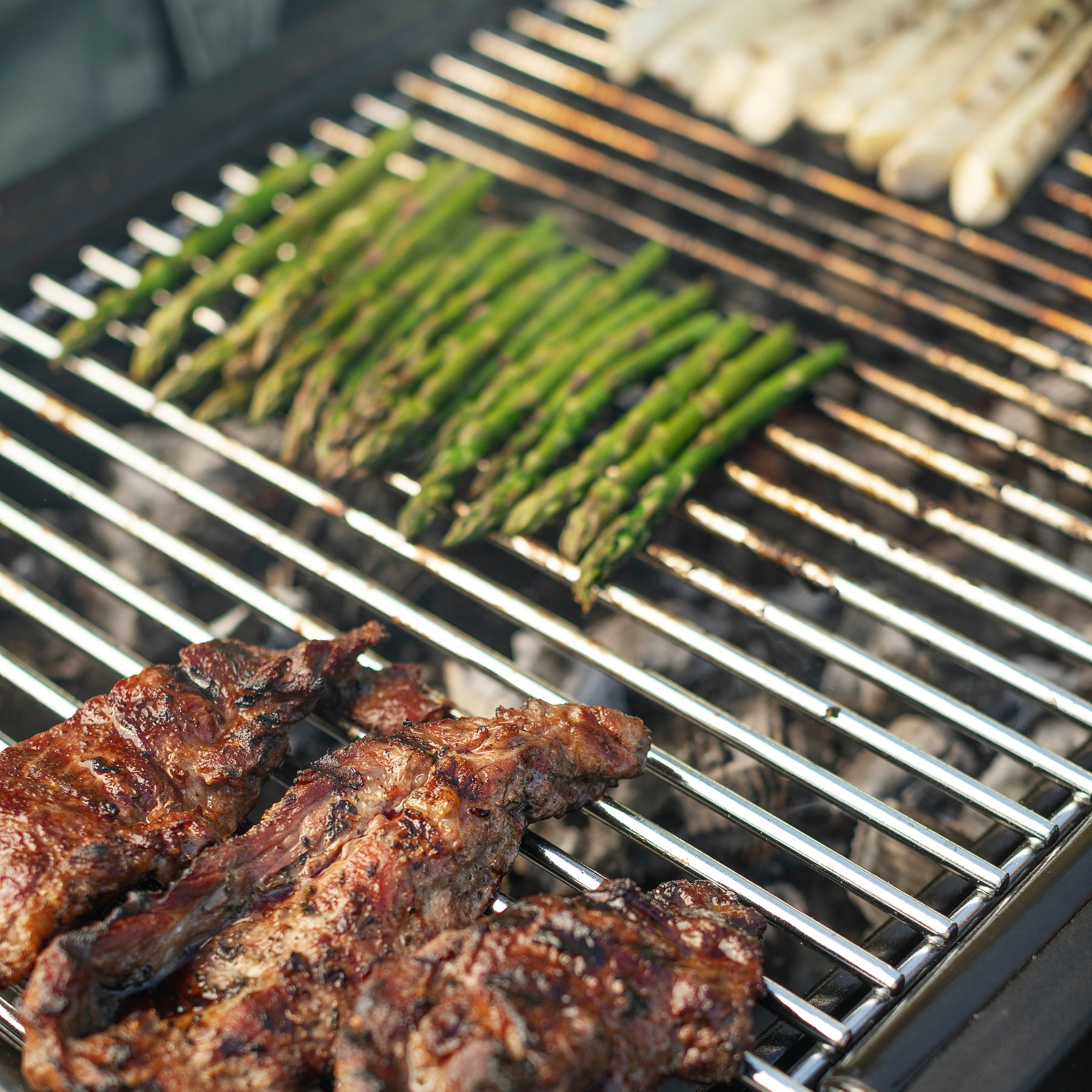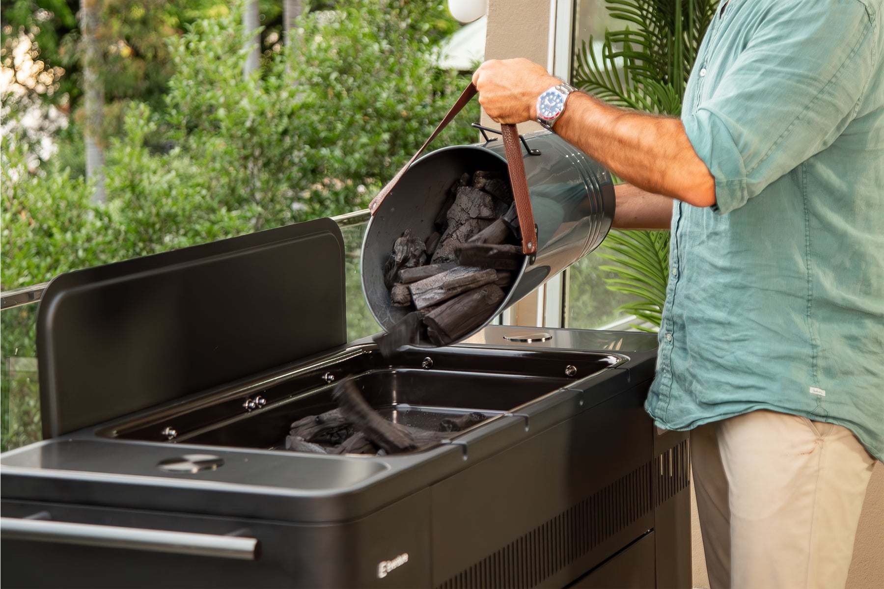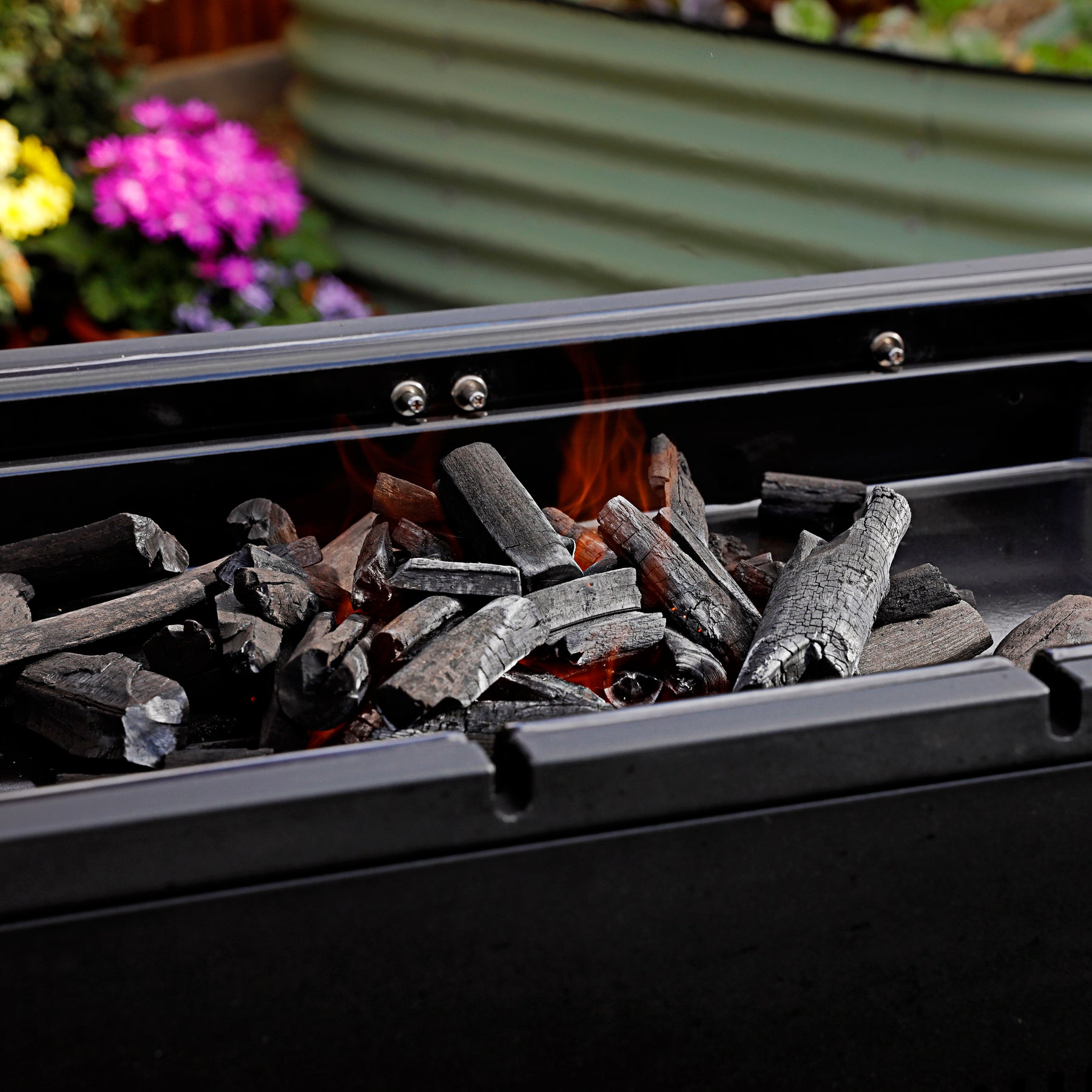 • Removable chrome grills with cool-to-touch chrome handles for safe and easy charcoal reloading